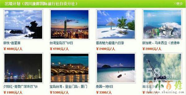 商家名称:自贡市康辉国际旅行社有限公司联 系 人:梁经理座 机:0813-8208000联系地址:自贡自流井汇东广电大厦北侧2楼服务区域: 渭南 大荔县 大荔周边